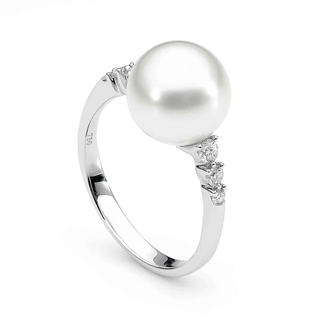 This Australia South Sea Pearl ring has been handcrafted in 18ct White gold with three diamonds on either side of the pearl.